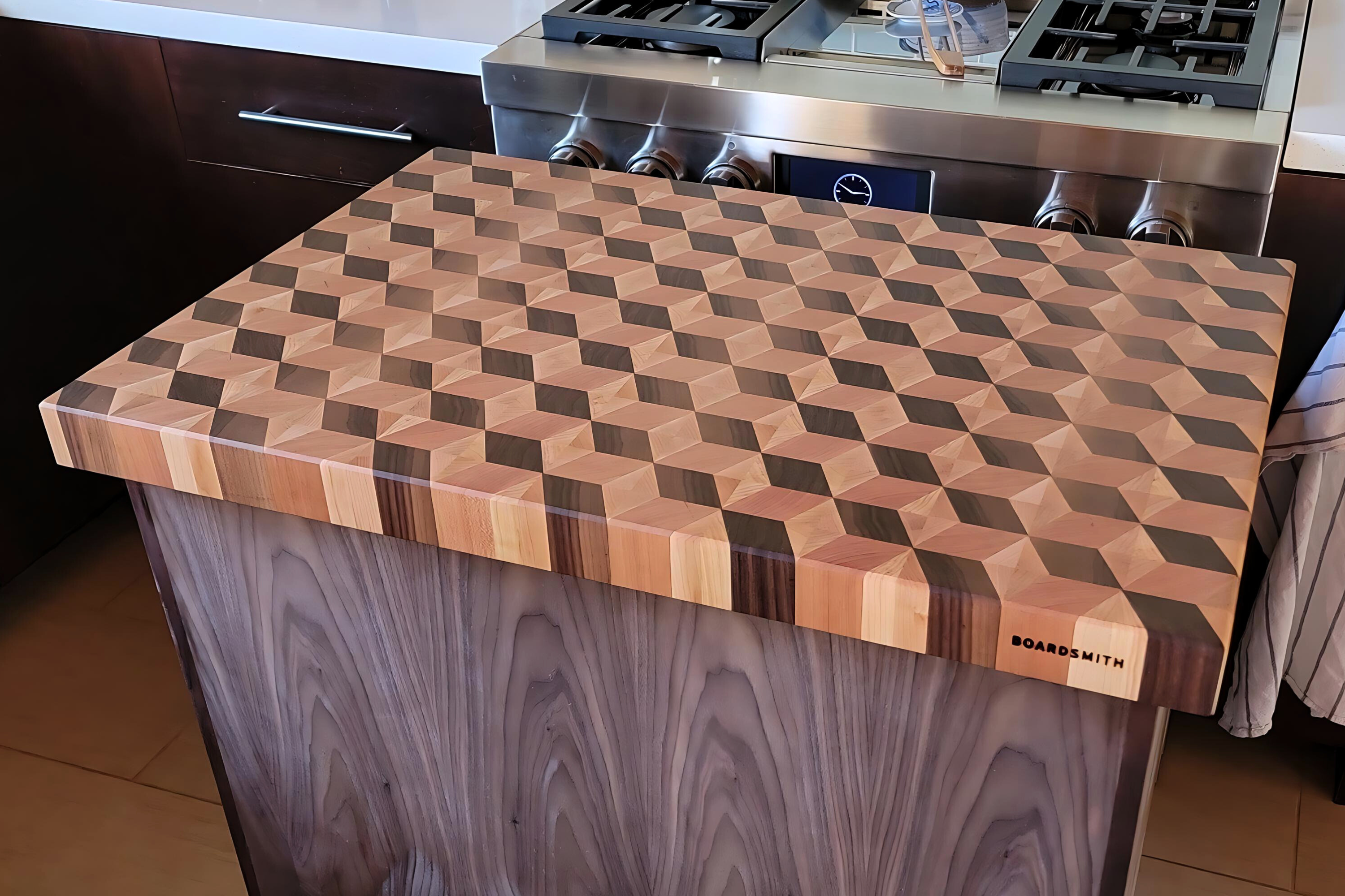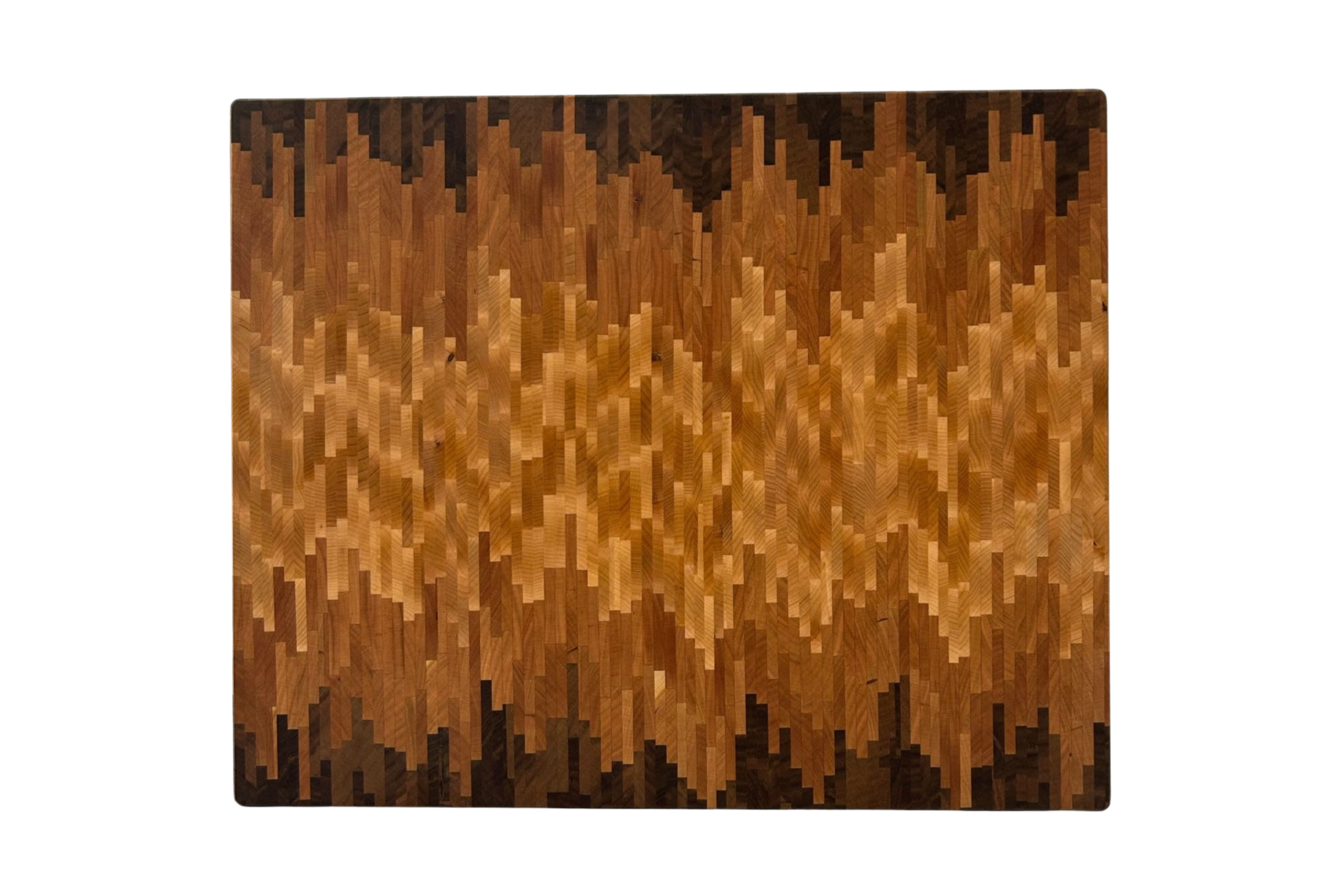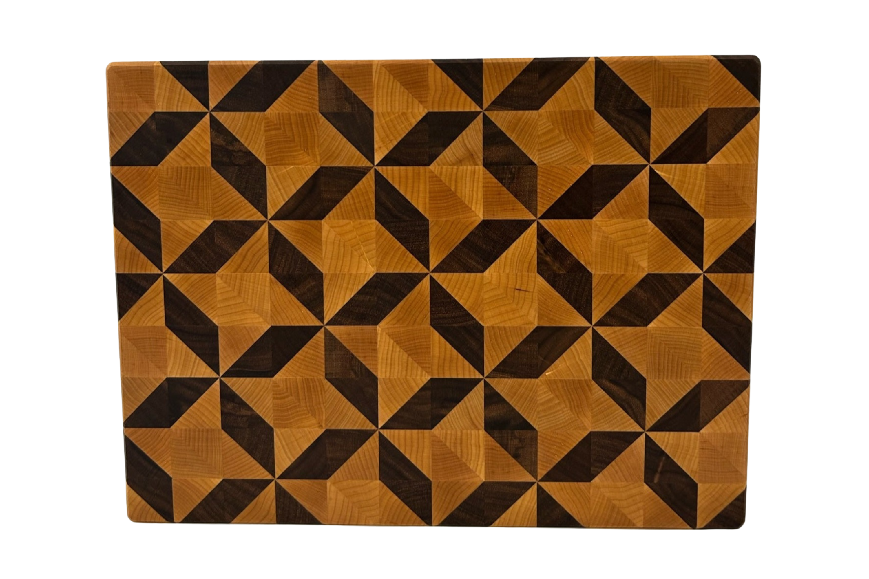 24" X 36" X 2 1/4" end grain 3D pattern board in maple, walnut, and cherry.