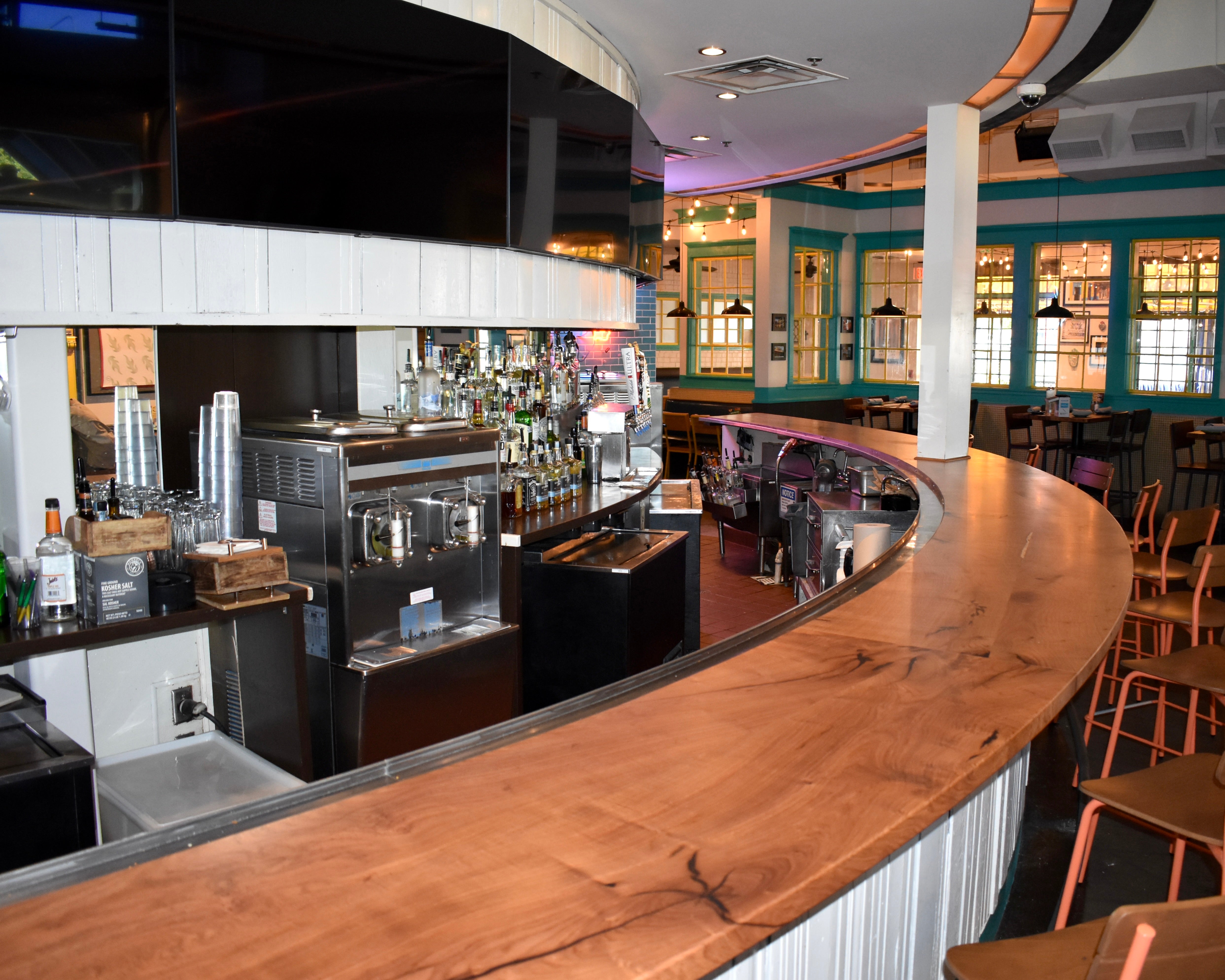 38' curved solid mesquite bar top for a local restaurant in Frisco, TX.