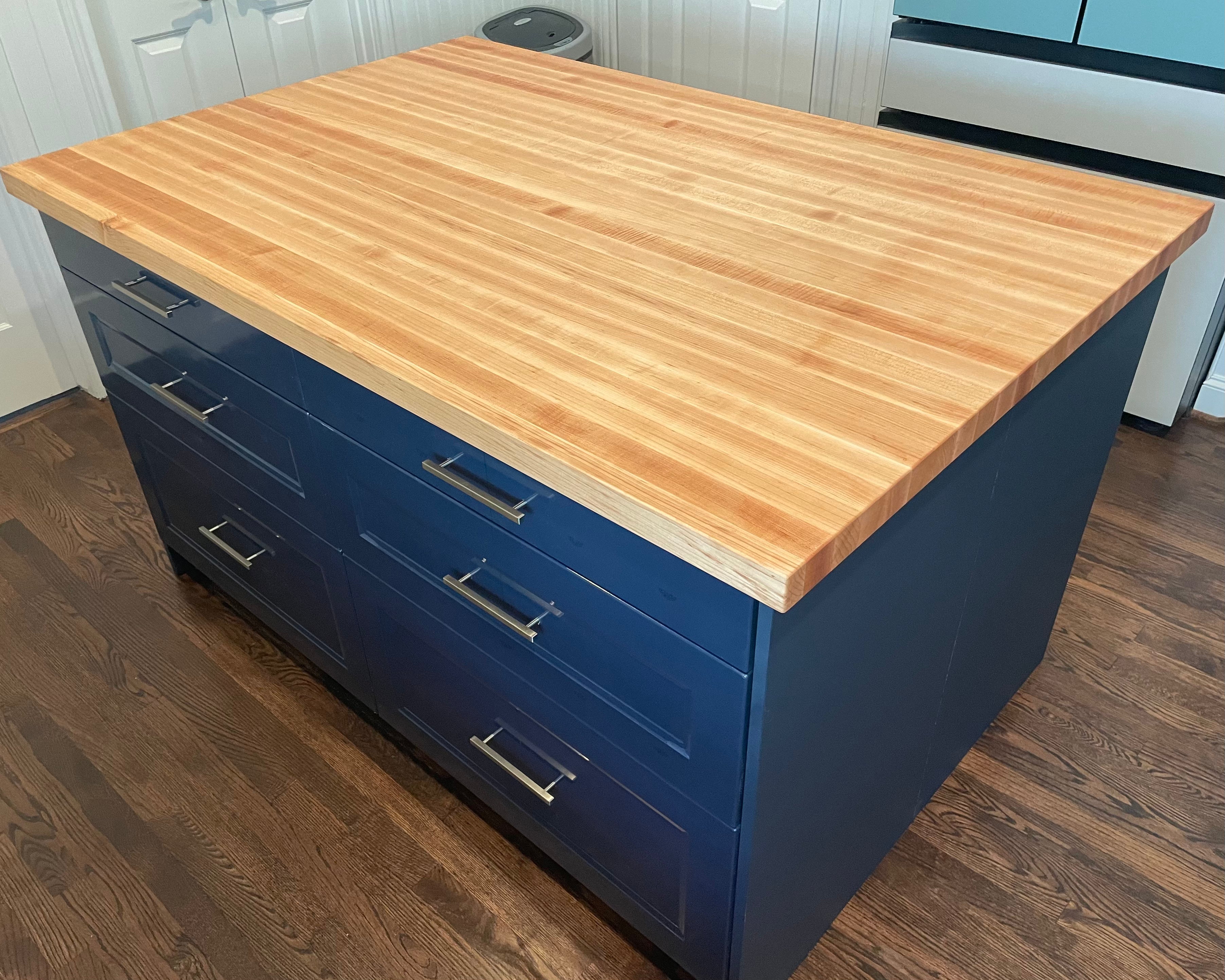 63.5" x 42" x 1.75" maple edge grain countertop for kitchen island.
