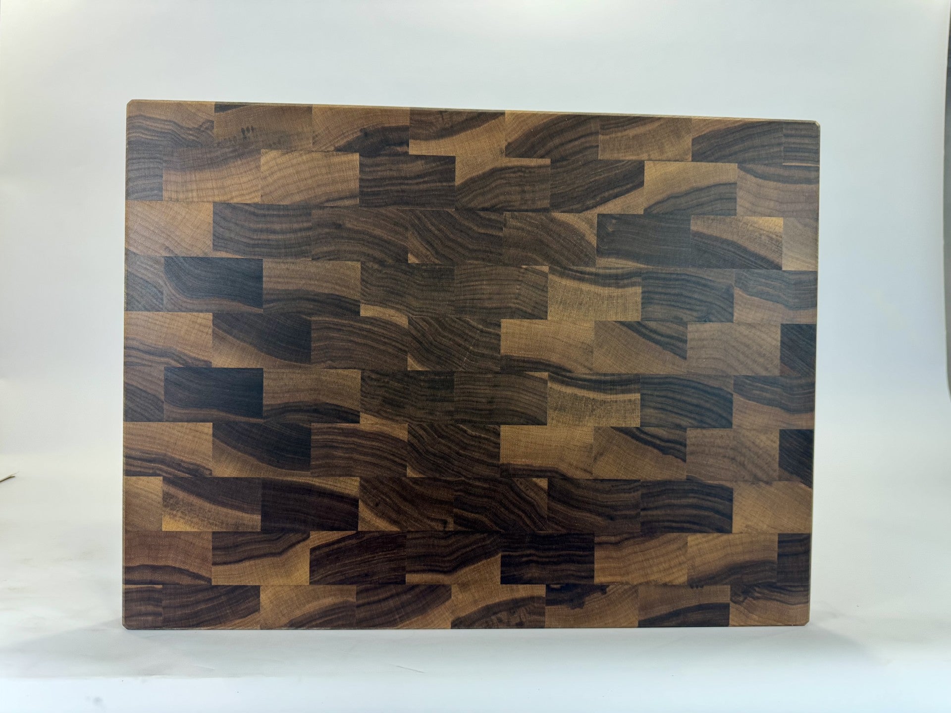 Our walnut boards tend to have a lot of sap wood (lighter color) mixed with the normal darker walnut color.