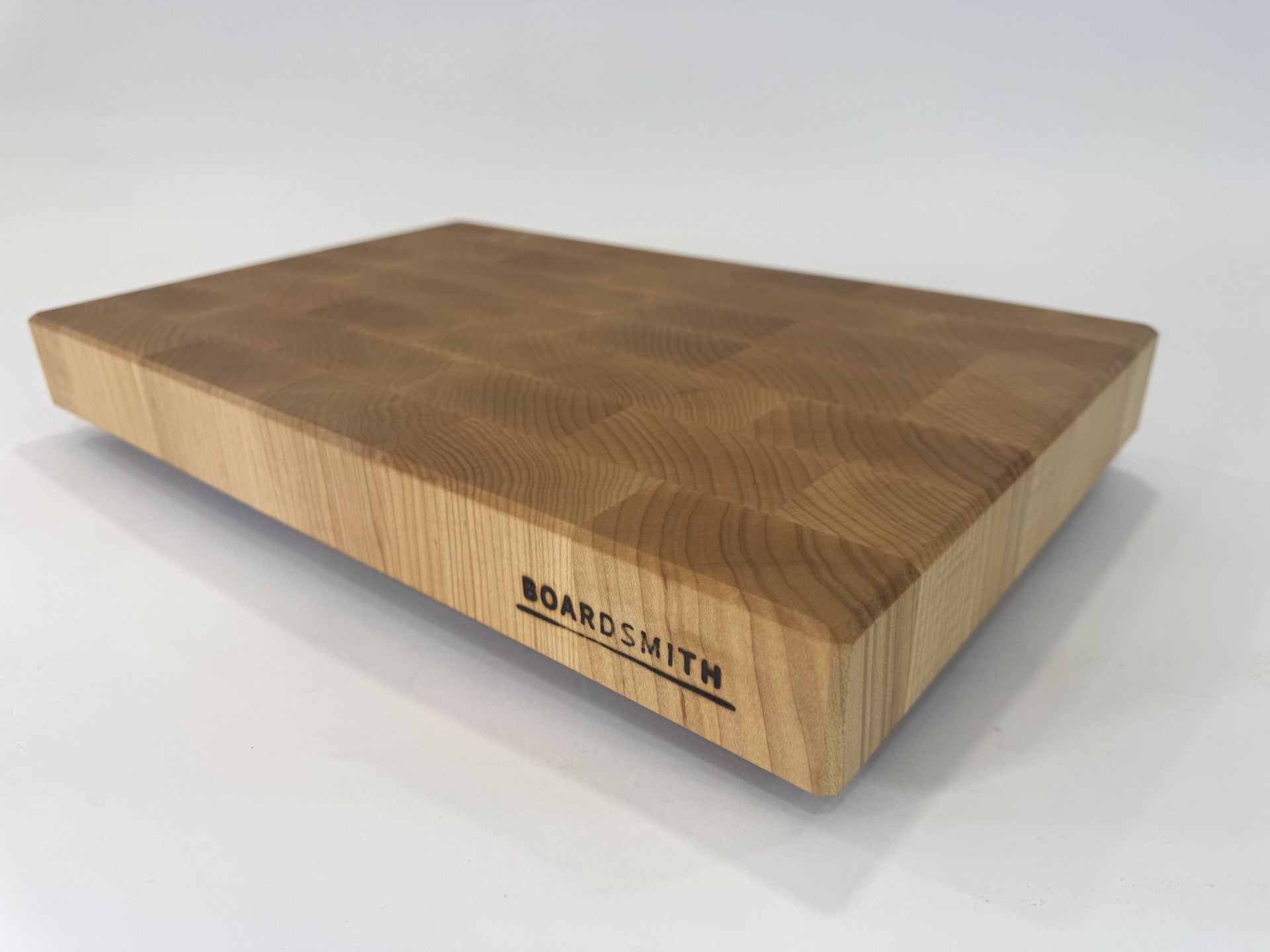 Frankenboard: When making butcher block, the first step is to glue up a large panel. We then cross-cut strips from that panel, turning them on end in sequence and gluing those together to form the final butcher block. We often have extra strips from any given panel. When we have a butcher block formed from strips from more than a single panel, that’s a “Frankenboard.” Nothing wrong with it, it’s just that the look of the grain pattern from one row to the next doesn’t necessarily flow seamlessly.