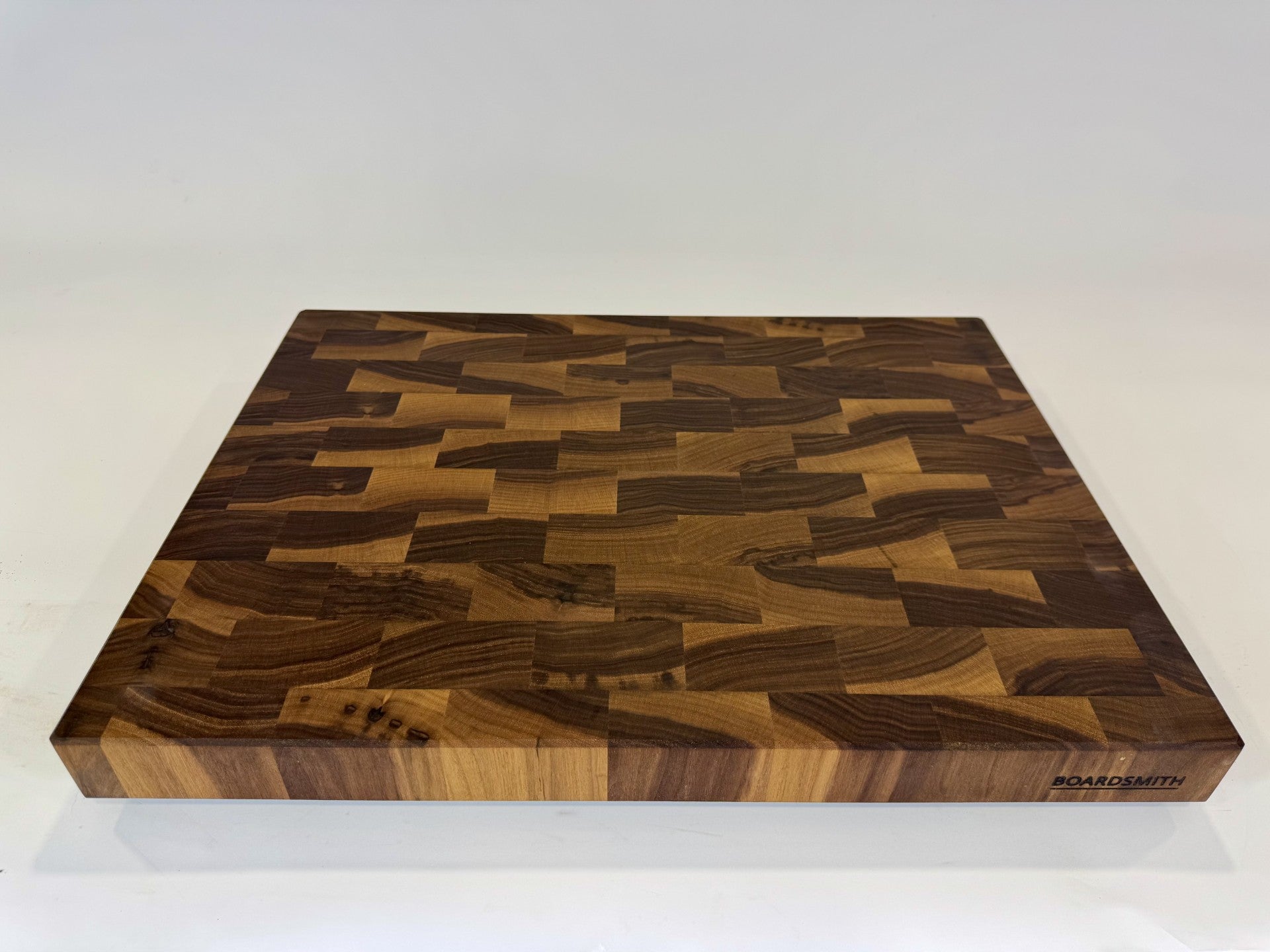 Our walnut boards tend to have a lot of sap wood (lighter color) mixed with the normal darker walnut color.