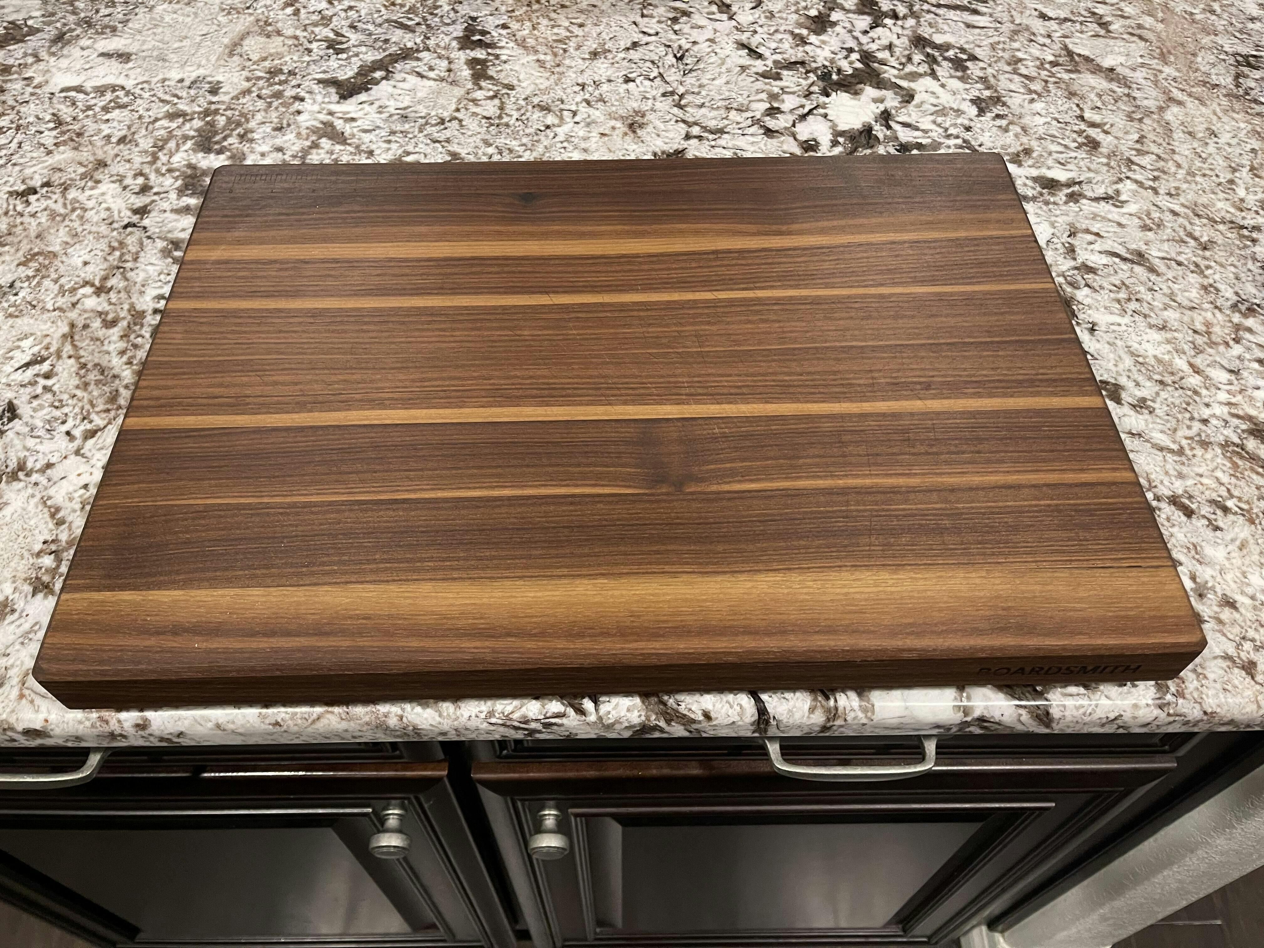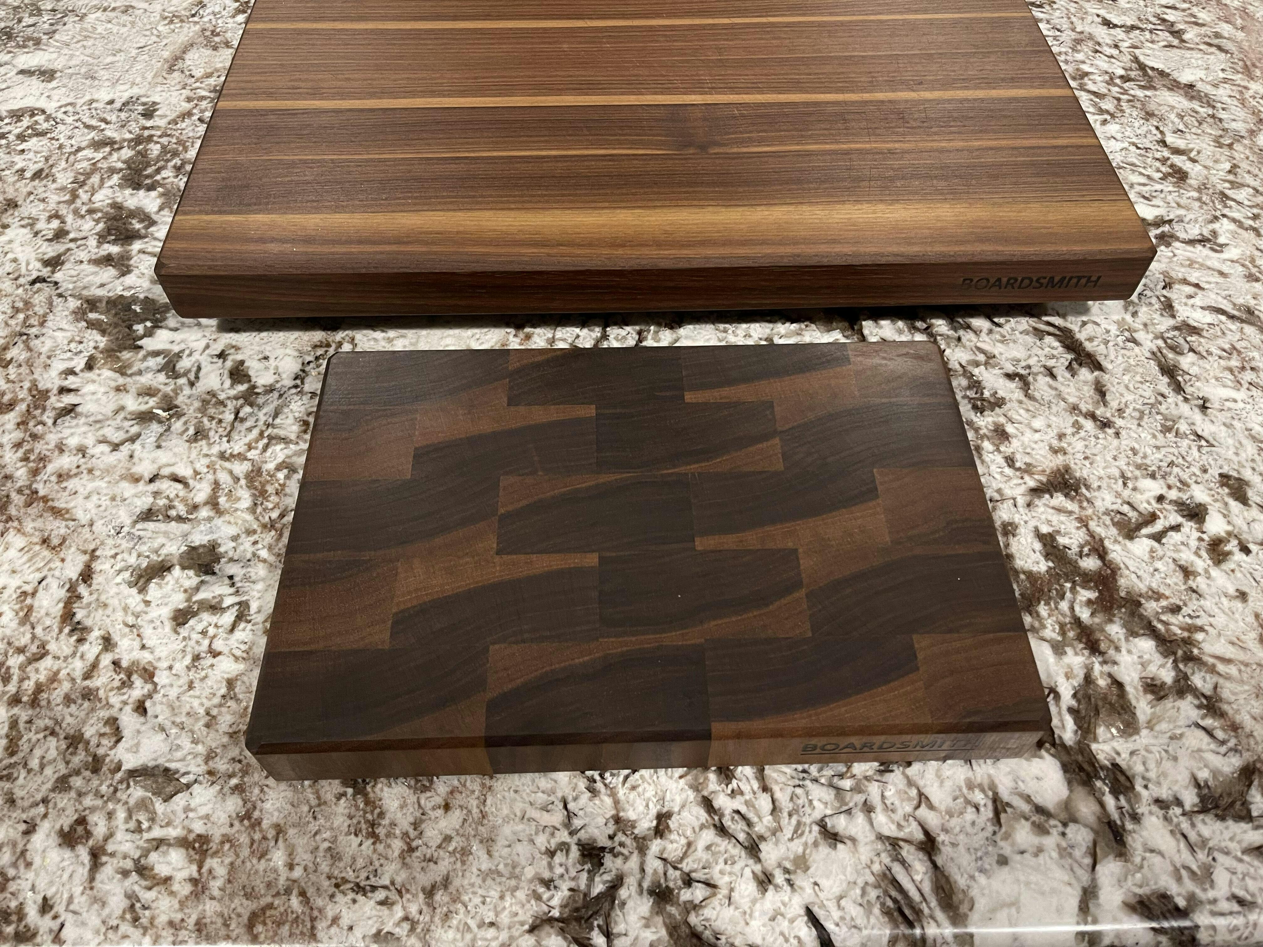The quality of these cutting boards is like no other that I have ever seen. The boards look like they were made with Love. They look and feel so good you hate to cut on them, but when you do, the feel of the boards are solid and fantastic. We leave the board big edge grain board out on our island like it is a center piece for everyone to see. We also purchased a small walnut end grain board for quick smaller cutting jobs and it is just as great. You never see this kind of quality in anything you buy today, never. Thank you Boardsmith for what you create in these cutting boards.