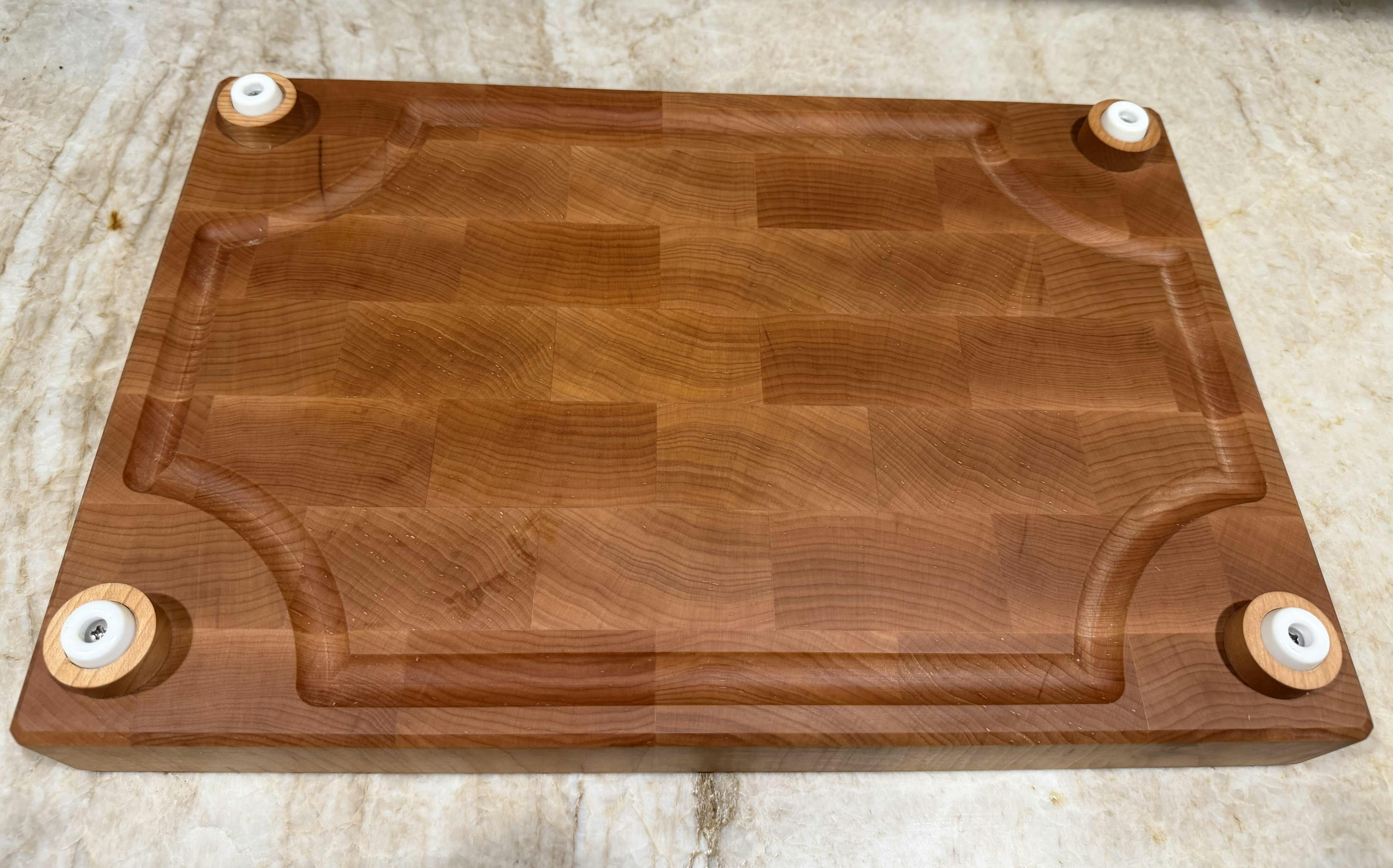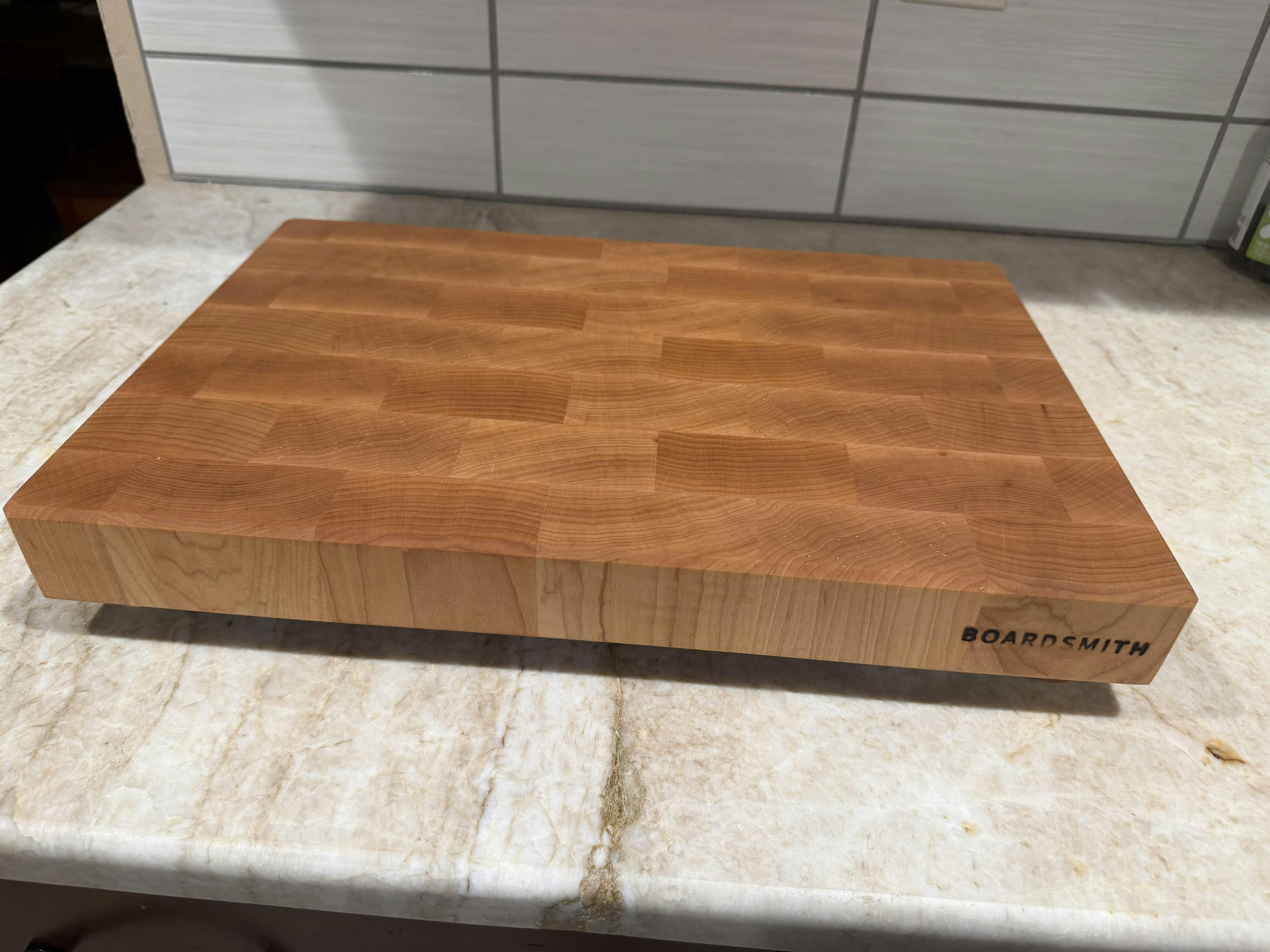 I was looking for a new cutting board to replace some old plastic ones. It was a splurge but I’m so pleased with my purchase of a maple end grain cutting board. It is beautiful and functional. I ordered the butcher block size with bottom juice groove so I can cut meat on this side and other foods on the top. I didn’t ordered finger grooves but have had no problems carrying the board. I recommend ordering the board butter and oil.