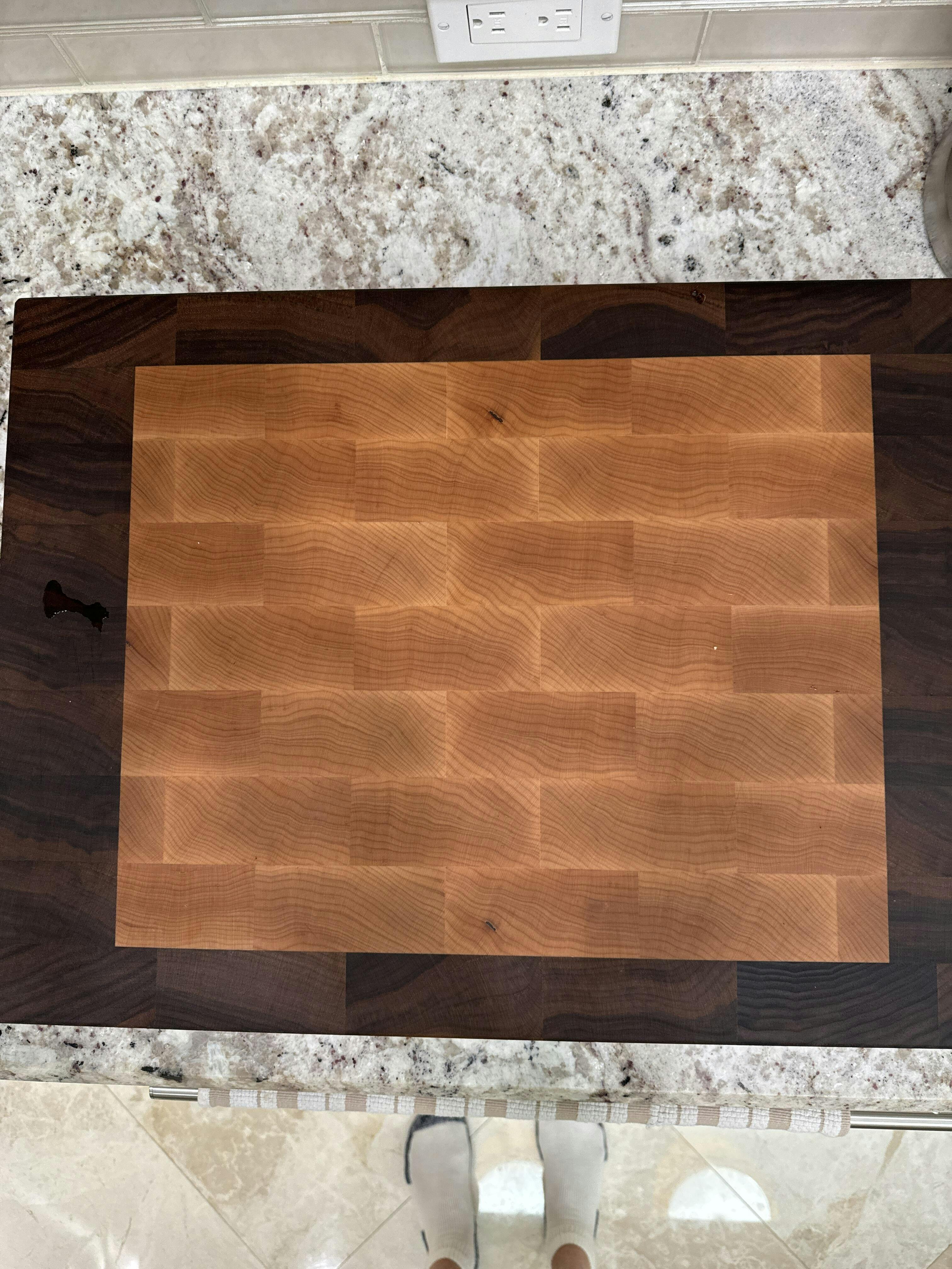 Suggest adding the smaller companion board in an offset color (Maple) for a nice contrast. Also add the juice channel and feet to the bottom side for flexibility in use.