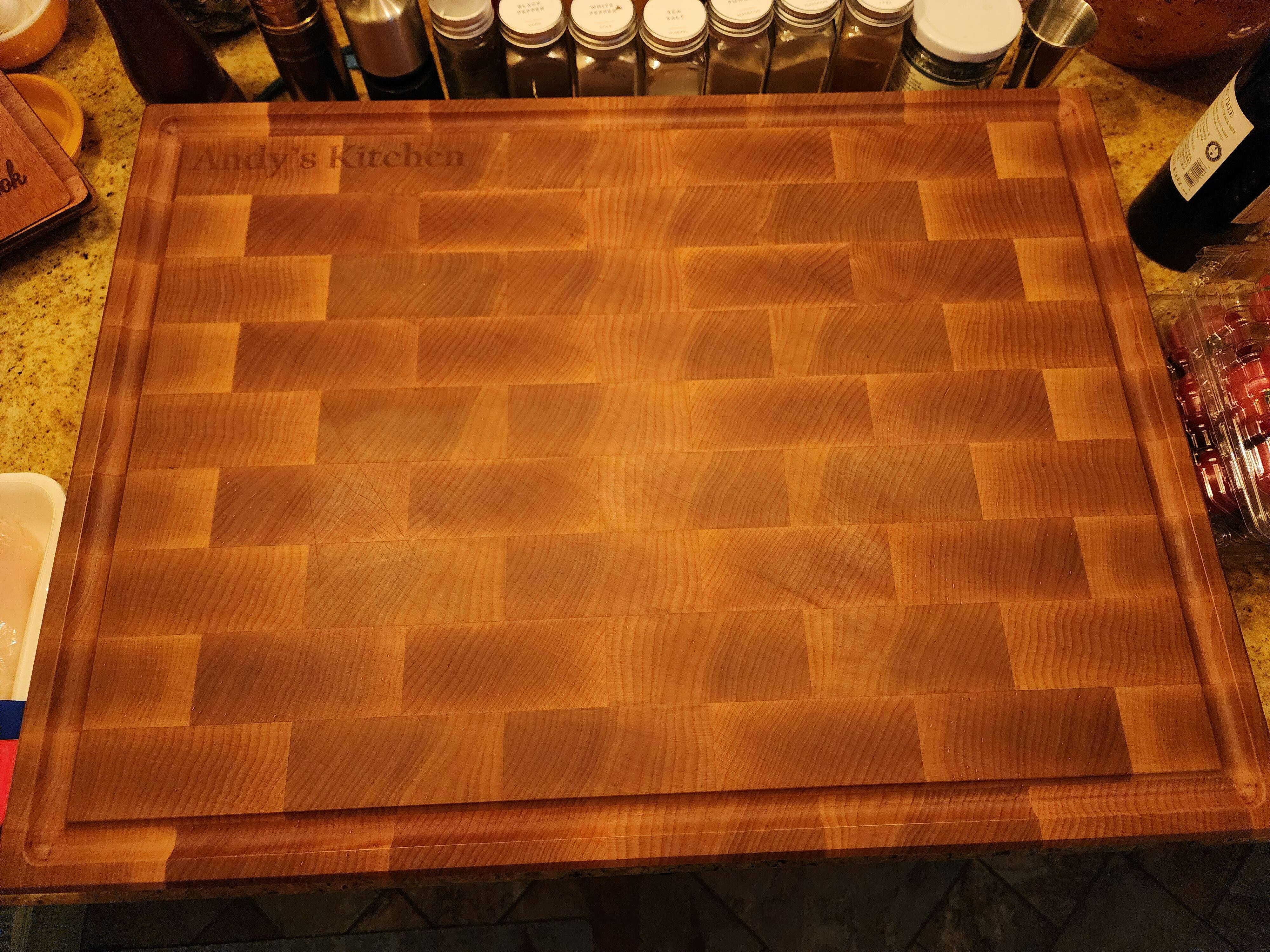 The board is overall 100% what I could have hoped for. The surface is smooth, the groove is flawless and the engraving is such a nice touch! It's harder to see but in my house, it's more for the chef than the company!