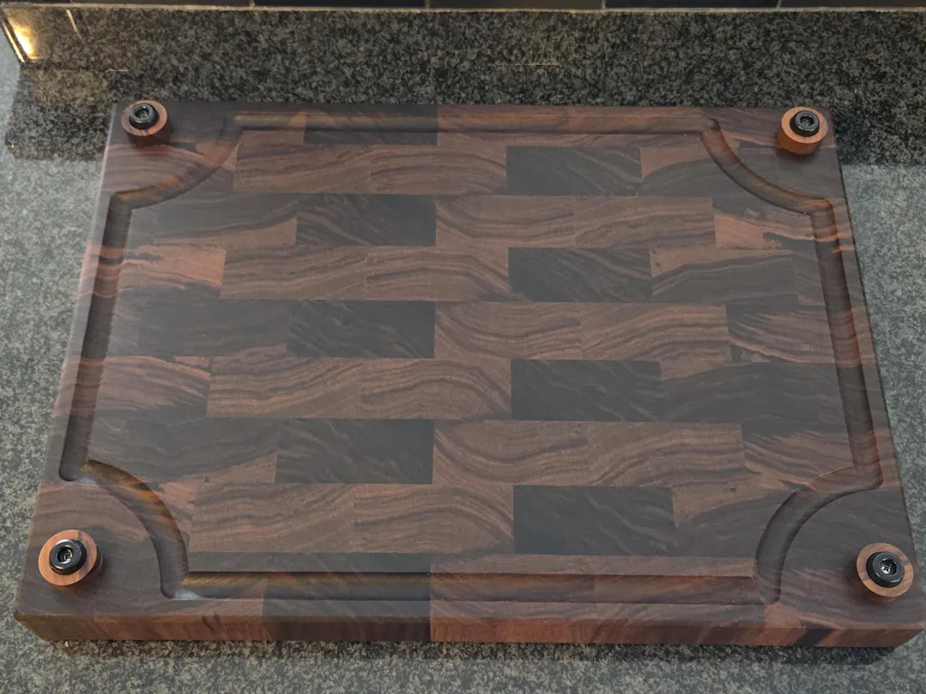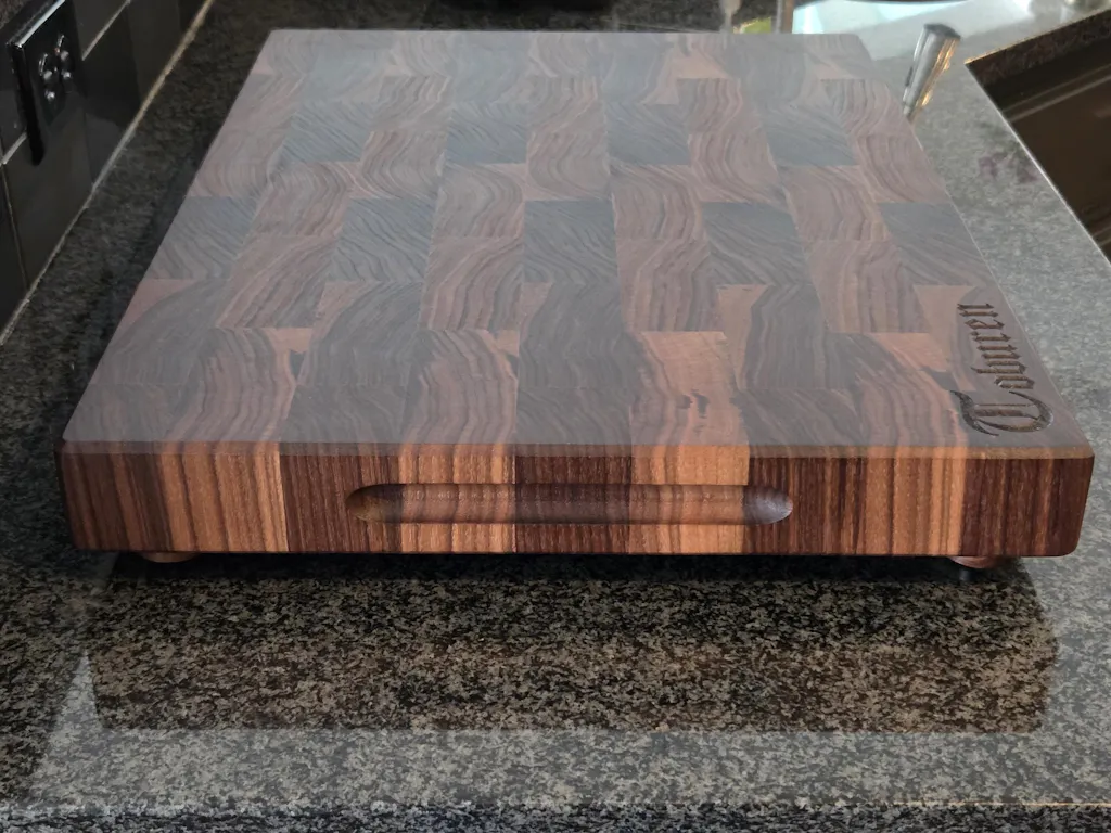 I included finger grooves which makes it much easier to grip the board. Weighing-in at almost 20lbs, you don't want to lose your grip on this bad boy! I also opted to include a juice groove on the bottom of the board which keeps the top surface smooth and aesthetically pleasing to the eye. I can easily flip the board over when it comes time to carve larger cuts of meat like roasts and briskets.