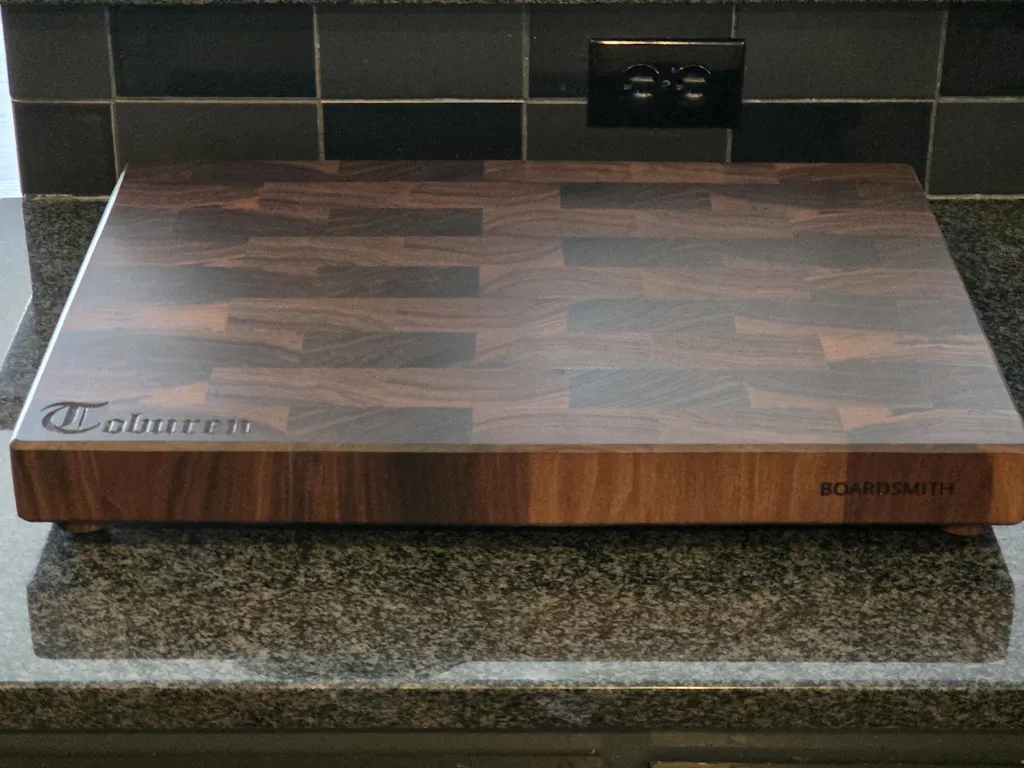I've wanted a wooden cutting board for very a long time and I knew it would be a lifetime investment. As a finishing-touch, I asked the good folks at Boardsmith to engrave my last name on the cutting board so it could be passed down to one of my lucky kids as a family heirloom. The "Old German" font turned out fantastic and I couldn't be happier with my cutting board and my overall experience!